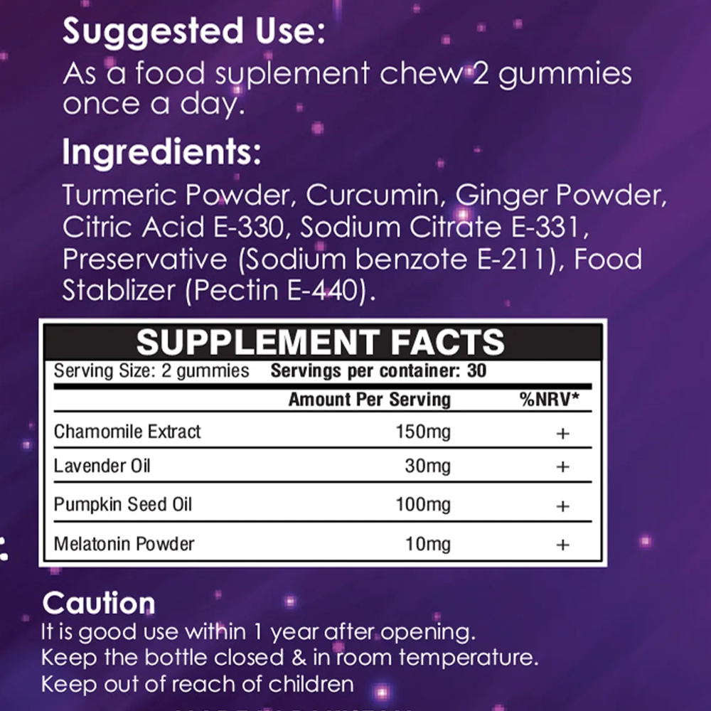 Take 1-2 gummies 30 minutes before bedtime to help promote relaxation and ensure a restful night’s sleep.